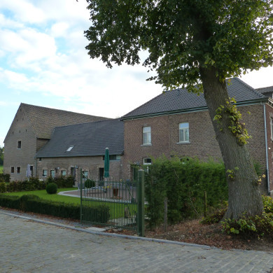 Grote bakstenen hoeve met binnenplaats, XVIIIc. Rechthoekige omlijstingen van Naamse steen. Op latei van voetgangerspoortje een latijnse spreuk. Vroeger laathof van het Munsterstift te Aken.