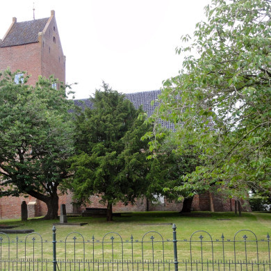 N.H.Kerk en toren op verhoogd, omheind kerkhof. Romano-gotisch kerkgebouw, uitwendig vijfzijdig, inwendig halfrond gesloten; de westtoren met zadeldak zou blijkens stichtingssteen in 1651 opgetrokken zijn doch is waarschijnlijk 18e eeuws evenals de westgevel. In de kerk preekstoel met klankbord, herenbank met snijwerk en banken met knoppen, gesneden 18e eeuwse tafel. Orgel uit 1809 gemaakt door L. van Dam. In 1834 door Van Dam uitgebreid met een Bovenwerk op balustrade met wapens Lewe-Alberda. 16e eeuwse zerk. In de toren twee zeer oude zerken. Mechanisch smeedijzeren torenuurwerk, ca. 1640.