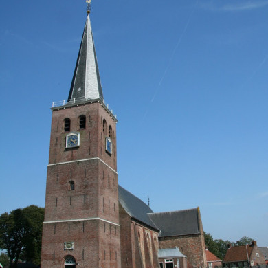 Herv. Kerk. Grote gotische dorpskerk op door ringweg omgeven kerkhof, bestaande uit zes traveeën lang schip met vijfzijdige koorsluiting in 1877 vernieuwd, aanbouwen aan de vierde travee aan noord- en zuidzijde, waarvan die aan de zuidzijde door zadeldak tegen topgevel, die aan de noordzijde door zelfstandig dak door spits torentje bekroond, gedekt worden.