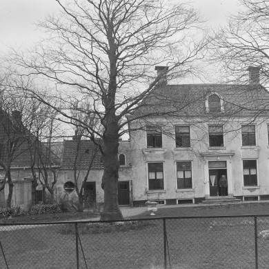 Groot blokvormig herenhuis met verdieping onder omlopend zadeldak met vier hoekschoorstenen.