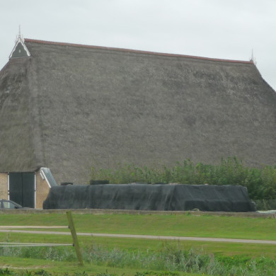 Vrij gave kop-hals-romp boerderij. Achterzijde schuur gaaf.