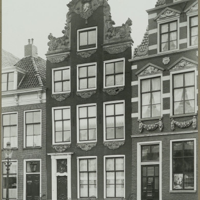 In de lambrequins onder de klauwstukken gedateerd 1746. Onder alle overige vensters zware lambrequins in Lodewijk XIV stijl. De top van de gevel is eveneens rijk met beeldhouwwerk versierd waarin de kop van Hippocrates is voorgesteld. Weelderig gesneden deur, bovenlicht, bovendorpel en deuromlijsting.