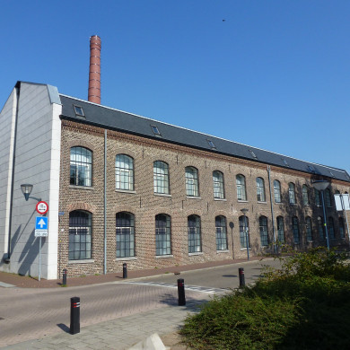 FABRIEKSGEBOUW van de voormalige wollenstoffenfabriek A. v.d. Heuvel en Zn.; uit 1863 daterend, in schoon metselwerk opgetrokken pand met verdieping onder met leien gedekt Mansarde-dak.