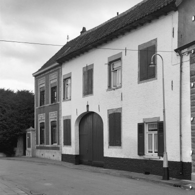 Bakstenen huis met binnenplaats. Witgeverfd. Vensteromlijstingen in Naamse steen. Poort. 1799.