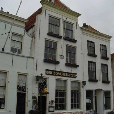 Hotel "De Gouden Leeuw". Belangrijk gotisch huis, herbouwd na stadsbrand van 1482, voorste deel vernieuwd ca. 1545, met moerbalken op houten muurstijlen en gotische sleutelstukken.