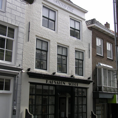 Huis met gepleisterde lijstgevel. Dakkapel. Kap gewijzigd. Winkelpui. XVIII-XIX.