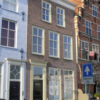 Museum. Laatgotisch huis 1533 met trapgevel van bak- en natuursteen met geprofileerde togen en cordonbanden. Gaaf voorbeeld van een geveltype, gekenmerkt door de overkraging der verdiepingen op bogen, die op kraagstenen tussen de vensters rusten.