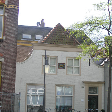 Witgeverfd pand (17 eeuw; gevel gewijzigd 2e helft 18e eeuw) onder aan de voorzijde afgewolfd zadeldak gedekt met rode Hollandse pannen.