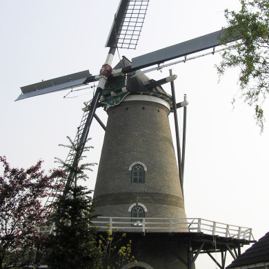 Korenmolen "Nooit Gedacht". Ronde stenen bovenkruier met stelling. 1872.