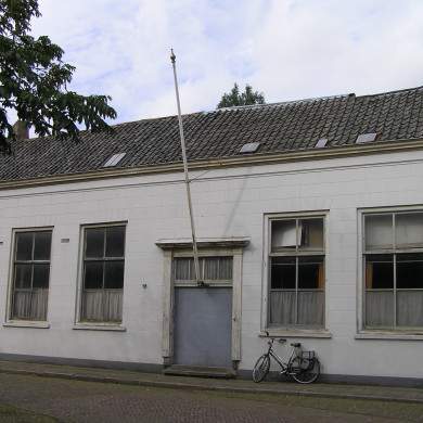 Eenvoudig dwarshuis onder pannen-zadeldak. Zesruitsschuiframen. Voordeur met omlijsting in Lod.XVI-motieven. XVIII/XIX.