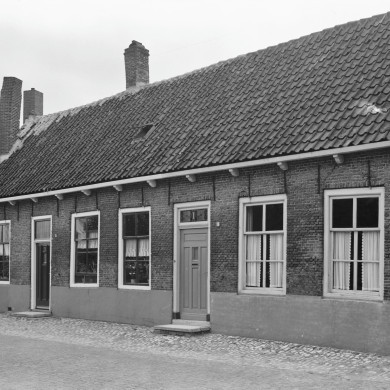 Dwarshuis. 6-ruits schuiframen met rollagen. Pannen zadeldak. XVIII-XIX.