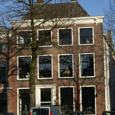 Patriciershuis (XVIII C). Kroonlijst met rococo-consoles, hardstenen plint, geprofileerde vensterdorpels, gesneden deur met verdiepte pilasters en bovenlicht, schuiframen uit de bouwtijd en uit XIX A. Stoep met palen en hekken. Hoekpand Nieuwsteeg.