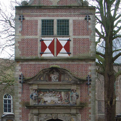 LAZARUSPOORT van het Bestedelingenhuis. Rijk versierd poortje, fungerend als toegangspoort tot de tuin van het voormalig Catharina Gasthuis.