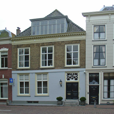 PAND met gepleisterde lijstgevel (XIX a) met gave pui, waarin deur met gesneden bovenlicht en ramen ca.1800. Onder de lijst consoles (XIX c).