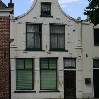 PAND met vier identieke tuitgevels (ca.1800 ?) met topobelisken. Roedenverdeling van de vensters stijl XVIII.