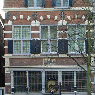 HUIS "de Moriaan". Renaissance gevel (ca.1625) met oorspronkelijke, houten pui onder geprofileerde puibalk, verdieping met gebeeldhouwde maskers, korfbogige ontlastingsbogen met klokken en sluitstenen, natuurstenen banden, geprofileerde waterlijsten muurankers. Top gewijzigd. Zijvoluten op dekplaten. Eenvoudige lijst XIXa (?). Zeer fraai interieur. Gerestaureerd ca.1955.