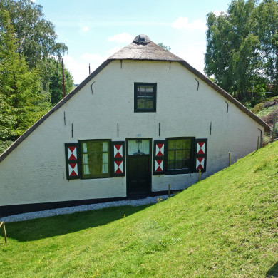 Boerderij uit de 17e eeuw met rieten wolfdak en rechts uitgebouwde opkamer. Vensters met ontlastingsbogen en negen- en twaalf-ruitsschuiframen.