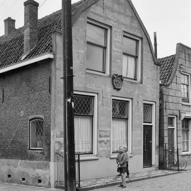 Pand vanwege gevelsteen met cartouche en wapen, waarop het jaartal 1696. Twee ijzeren stoephekken.