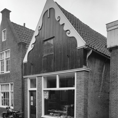 Huis met houten van uitgeschulpte windveren voorziene topgevel, achttiende eeuw.