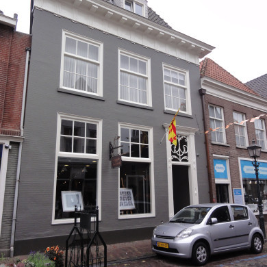 Huis met hoog schilddak en lijstgevel, kroonlijst met klossen, triglyphen en druppen, deuromlijsting en gesneden bovenlicht, plm 1800. Nog geheel woonhuisvorm. Achtertopgevel met vlechtingen, aanbouw eveneens met topgevel en vlechtingen XVIII.