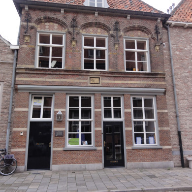 Geprofileerde waterlijst, nu door zolderluik doorbroken. Beganegronds verbouwd. Plm 1600.