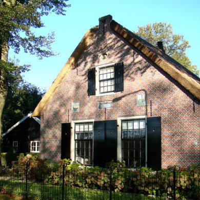 Boerderij 'In d'Londvaerder 1673', langhuis met rietgedekt in de voorgevel drie gebeeldhouwde stenen, ramen met kleine roedenverdeling.