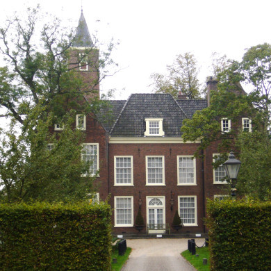 Voormalig KASTEEL 'De Binckhorst', gebouwd in de 17e, verbouwd in de 18e eeuw, bestaande uit een middenpartij en twee naar voren springende vleugels, torentje, 18e-eeuws ingangshek.