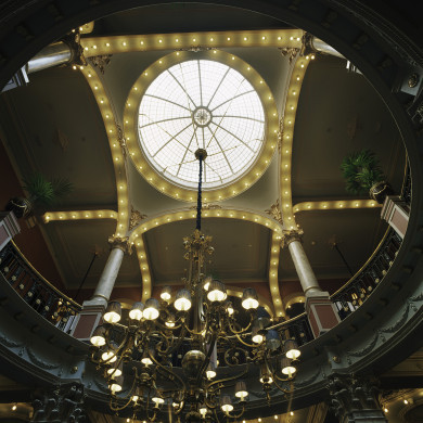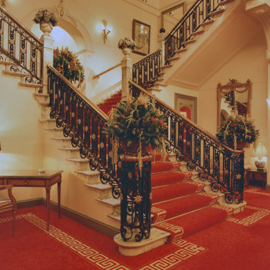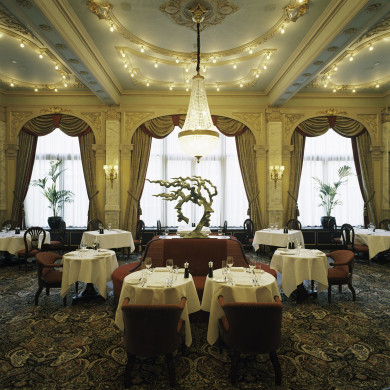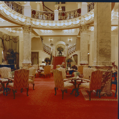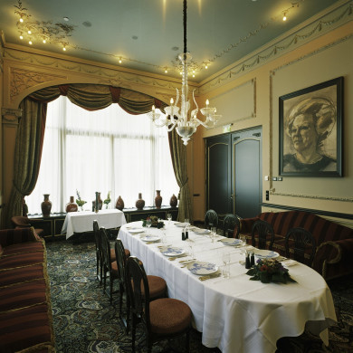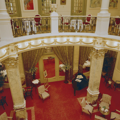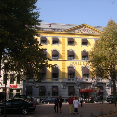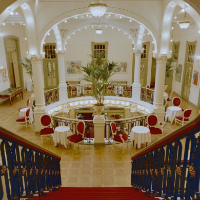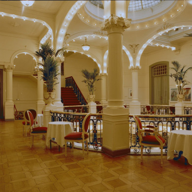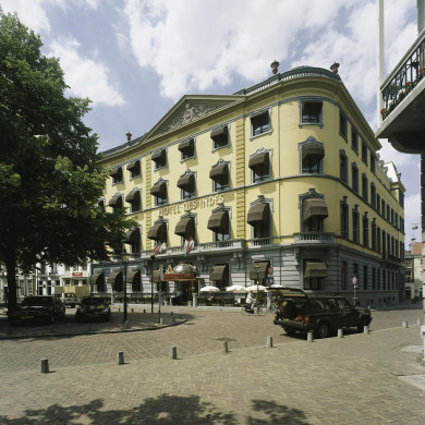 Hotel des Indes - fors bouwwerk uit de tweede helft van de 19e eeuw met natuurstenen gevel - weelderige interieurs uit de bouwtijd.