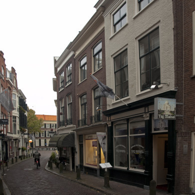 Pand met ingezwenkte halsgevel met aanzetvazen en recht afgedekte top van omstreeks 1700.