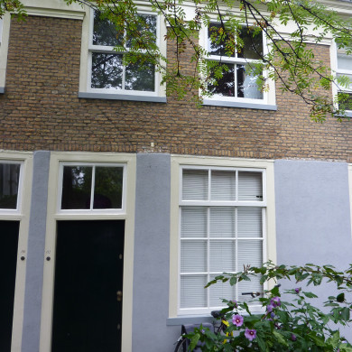 Severiehofje, op binnenterrein gelegen reeks van negen spiegelbeeldig aan elkaar geschakelde woningen, met verdieping onder langgerekt, met pannen gedekt zadeldak tussen puntgevels, in oorsprong gebouwd door A.Th. Zodaer in 1768-'69, thans genaamd Van Severiehofje.