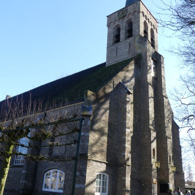 Sedert wijzigingen na verwoesting door de Fransen in 1672 bestaande uit een driezijdig gesloten koor van twee traveeën, uit de 15e eeuw, twee lage, 15e eeuwse, in de 19e eeuw ingekorte, dwarsarmen, een 15e eeuws schip van vijf traveeen, tegen 1500 met een noordbeuk vergroot en een ingebouwde 14e eeuwse toren met steunberen aan de westzijde, een boogfries onder de spits en een gewelf over de benedenruimte.