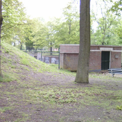 Historische Israelitische begraafplaats met zerken en grafstenen, 17e-19e eeuw. Aan de voet van het talud van het bastion aan de noord-oostzijde van de oude stad. Langwerpige begraafplaats door muurtje omgeven. Haaks hierop een pad, deel uitmakend van de vestingwerken.
