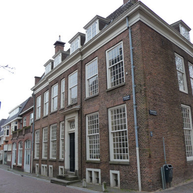 Pand met gevel met rechte kroonlijst, zadeldak, aan een zijde 17e-eeuws. Op de hoek van het Pieterskerkhof.