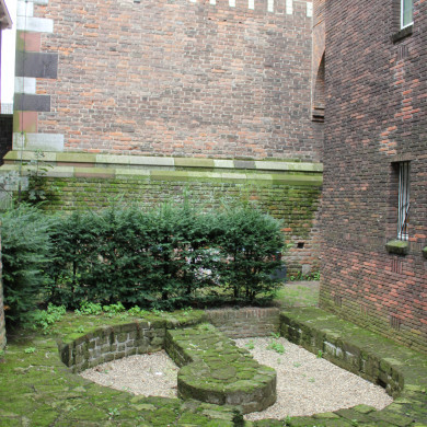 De in het perceel en bijbehorende tuin aanwezige Romeinse en middeleeuwse resten van het Keizerlijk Paleis Lofen.