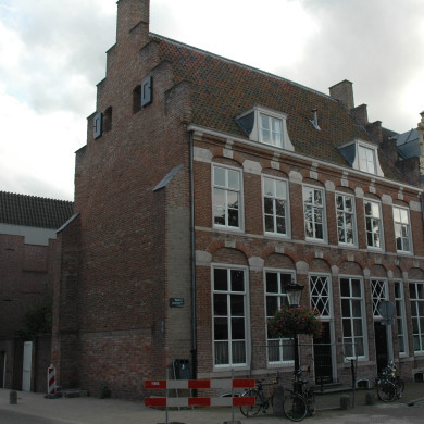 Pand met belangrijke renaissance-gevel met fraai gebeeldhouwde pilasters, banden schelpen boven de vensters, thans door rechte kroonlijst afgedekt. XVI. Venster met accoladeboog, aanvang XVII.
