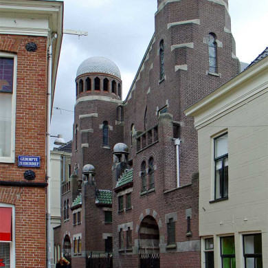 SYNAGOGE in 1906 gebouwd naar ontwerp in oriëntaliserende stijl van Tjeerd Kuipers, in samenwerking met J. van de Veen. Pand met kruisvormige, basilicale grondvorm, opgetrokken in baksteen met onderdelen en decoraties in natuursteen.