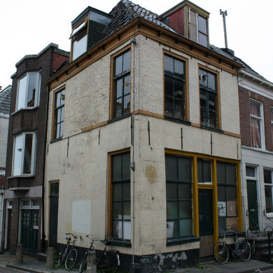 Hoekpand uit de 17e eeuw met puntgevel, voorzien van vlechtingen en toppilaster op consoles. Deur met panelen en gesneden bovenlicht, omstreeks 1800. Onder de toppilaster een ontlastingsboog met sluitsteen en bovendorpel van een dichtgezet venster.