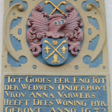 Serie woningen onder zadeldak evenwijdig aan de straat vormend het Anna Varwergasthuis blijkens stichtingssteen uit 1632. Nr 12 met verdieping en onder eigen zadeldak. Beganegronds 5 x 3 zesruitsvensters.