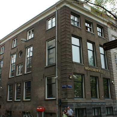 Dubbel huis (plm 1671, toegeschreven aan A.Dortsman, uitgebreid met zaal 1759) met gelaagde zandstenen gevel met hoeklisenen en middenrisaliet, onder gebeeldhouwde rechte lijst en attiek. Gebeeldhouwde ingangspartij; originele frontale stoep met kogels en hekken. Empire roedenverdeling.