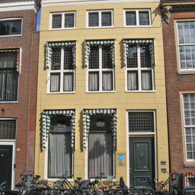 Eenvoudig woonhuis met volledige eerste verdieping, en lage zolderverdieping. Gevel gepleisterd en afgesloten door forse kroonlijst.