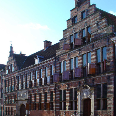 Deels nog middeleeuws PAND in de 17e eeuw verbouwd tot woning van Abel Coenders van Helpen burgemeester der stad en in 1754 tot zetel van de rechterlijke macht vergroot met een fraai gedecoreerde rechtzaal; de gevel in 1913-'17 in 17e eeuwse vormen teruggebracht.