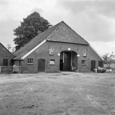 Boerderij onder pannen zadeldak, aan de voorzijde houten topschild, aan de achterzijde wolfschild; links schuin op de voorgevel aansluitend een bovenkamer, eveneens onder pannen zadeldak me houten topschild en voorzien van met luiken behangen zesruitsschuifvensters.