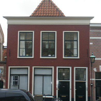 Laag PAND met lijstgevel, roeden en schuiframen, achttiende eeuw.