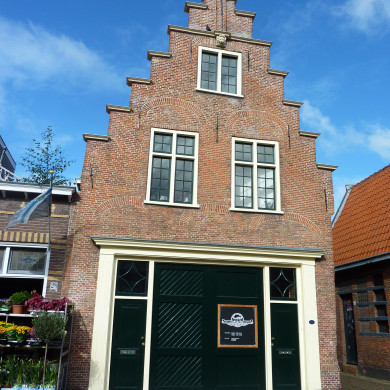 Pand met klokgevel XVIII met oude ingangspartij. Eenvoudige architectuur van betekenis voor het karakter van de gevelwand.