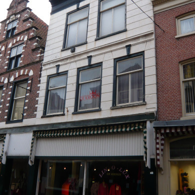 Pand met rechte kroonlijst rustend op consoles 18e eeuw. Beneden verbouwd.