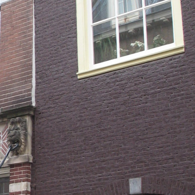 Pand met trapgeveltje in Haarlemse trant, rijke natuurstenen versieringen o.a. met pinakels, aanvang 17e eeuw.