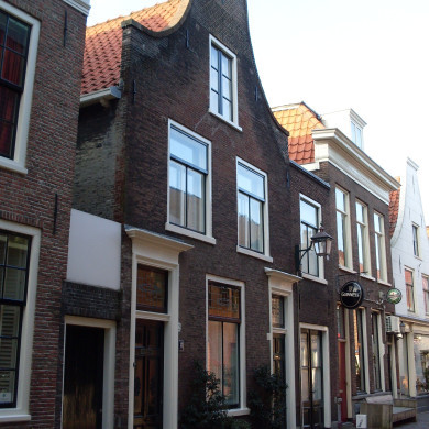 Pand met smalle trapgevel, eindigend in halfrond bovenstuk, 1610.