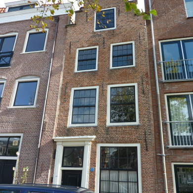 Pand met tuitgevel, eind 17e eeuw, naar vorenspringend middenstuk, 19e eeuwse ingang.