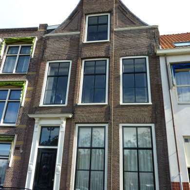 Pand met tuitgevel, eind 17e eeuw, naar vorenspringend middenstuk, 19e eeuwse ingang.