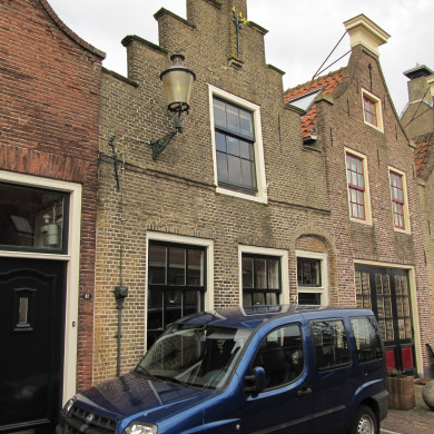 HUIS met IJsselstenen trapgevel (XVII A) met geprofileerde afdekplaten op de trappen, waterlijst, toppilaster en ankers. Boven de deur een geprofileerde ontlastingsboog.